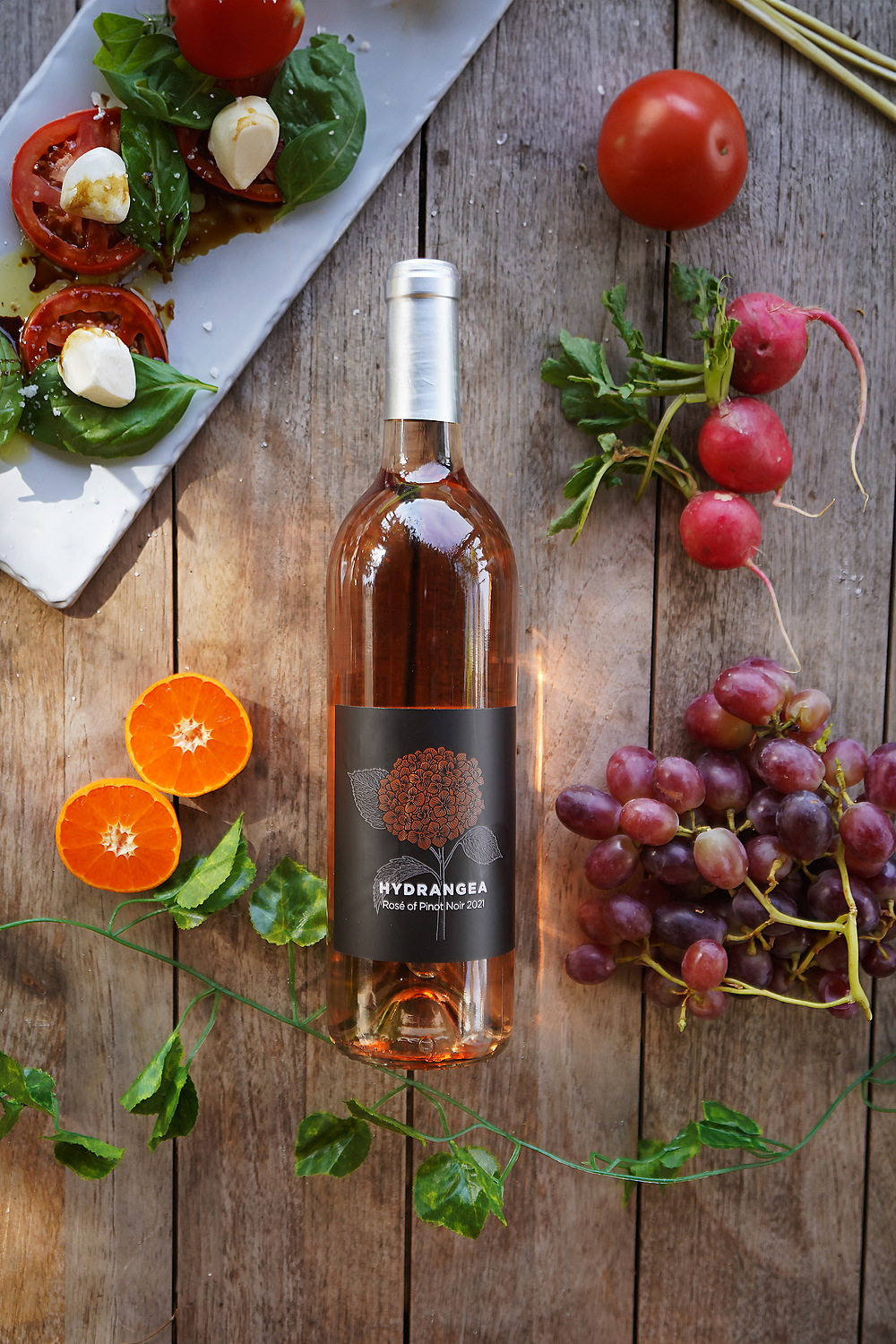あなたの目に映る紫陽花は何色でしょうか? サクラメントの南、温暖なクラークスバーグの畑で育てられたピノ・ノワールを100%使ったロゼワインです。ストロベリーやレッドチェリーの豊かな香りと、桜餅を連想させる味わいが特徴です。Hydrangea は日本語で「紫陽花」。土壌の酸性度によって花の色が青系や赤系に変わることから、土地や素材の味をそのまま鮮やかに表せたらと名付けました。毎年異なる葡萄の果皮そのものの色、および醸造時の接触時間により、微妙な色合いの違いが生まれるロゼの色を楽しんでいただくため、ボトルに描かれた紫陽花の花の部分を透明にしました。デザインを担当したのは@kudakurageさんです。AVA: Clarksburg