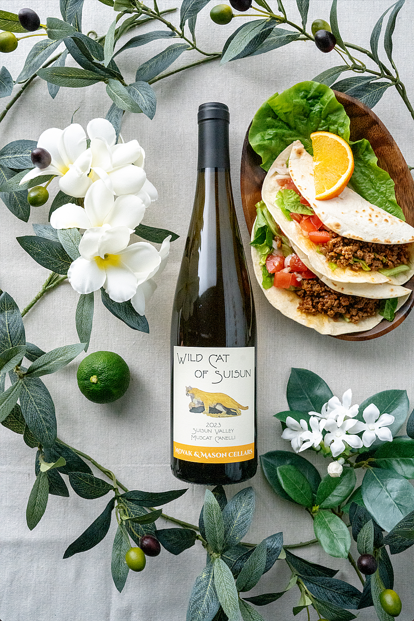 SUNSET SUISUN のパートナーワイナリー Novak Mason Cellars が ススーンヴァレーのCaymus Vineyards の葡萄をプレ・インダストリアル(工業化以前)の醸造法*で造った、残糖0のドライマスカットです。ワインメーカーレイチェルのコメント「初めてマスカット・カネリの香りに出会った瞬間、私はこの野性的な美しさをワインにしたいと決めました。 ススーン・ヴァレーの力強さを映すように、手摘み・バスケットプレス・自然発酵で仕上げた一本は、まるで山猫のように気まぐれで、しかし気高い。 その圧倒的な花の香りとドライな味わいは、食とともに真価を発揮し、飲む人の心を静かに揺さぶります。」 *手摘み、小ロット、バスケットプレス、褐色果汁、約20℃の自然発酵、無濾過、マロラクティック発酵あり