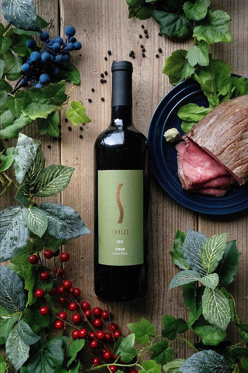 深みのある味わいが溜まり醤油を想起させる、食欲をそそるシラー。2021年は複数のヒートウェーブを乗り越え、もうこれ以上はハングタイムを伸ばせないギリギリというところで、ワイナリーのお隣にあるポールさんの農園で収穫した思い出深いです。ヒートウェーブか重なるとなかなかゆっくりと思うように葡萄が育ってくれないため、どこかで酸味と旨味、甘味のトレードオフを見極めるタイミングが訪れます。いつものサンセット流よりは少し早めに収穫をし、酸味の骨格を失わないように、それでいてシラーの持つ深みを保つ。この微妙なバランスの真ん中に位置するようなワインです。グラスに注いで少し休ませるか、デカンタすることでより整った芳香が立ち上がります。