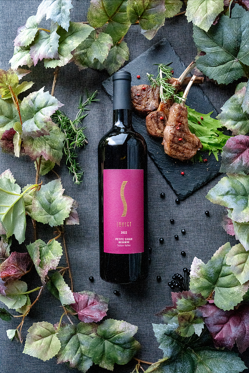 プティットシラーの名前は、シラーの姉妹種であることと、その葡萄の粒が小さいことに由来します。皮に含まれる色素タンニンの含有量が高く、非常に濃いワインに仕上がります。創業者カツコ・ダグが常に言うことは「ワイン醸造で最も重要なのは美味しい葡萄を確保すること」。プティットシラーの首都と自称する地元ススーンヴァレーで、最も高品質のプティットシラーを育てる畑とナパヴァレーの名門ケイマスに評価された、 Niffenegar Vienyard の葡萄を入手してのスタート。本ヴィンテージはワインメーカーのファーが、収穫からボトリングまで全てを自らの信念と SUNSET CELLARS の ZENZIN 哲学にのっとって造りあげた元年です。創業者のレシピからもよりフレッシュ感の強い方向性でこの濃厚で難しい葡萄を、よりフルーティに、飲みやすく仕上げました。地元のお客様およびワイン業界からも高い評価を得たファーのデビュー自信作です。