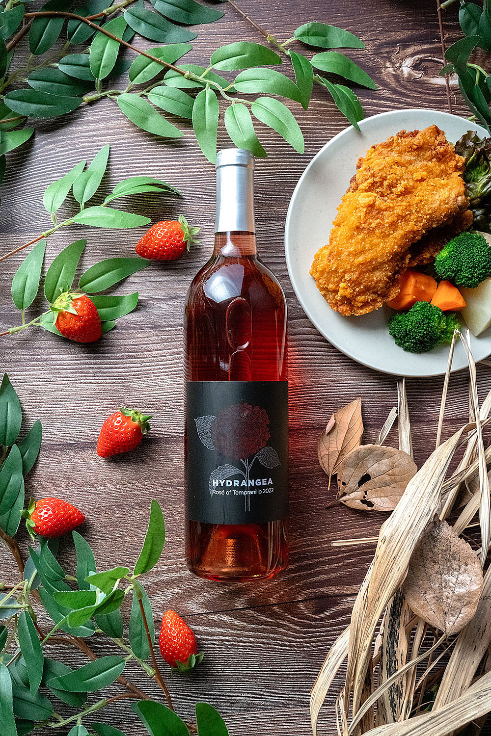 久しぶりに直球勝負的なピノ・ノアールをベースにしたロゼを出します。桜色のエレガントなジャケットに映されるように、繊細なストロベリーの芳香と、キリっとした酸味が特徴です。他のロゼが勘違いさせるような甘ったるさを全くもって想像させません。それでいて、単純に薄い味ではなく、導入からアフターテイストまでしっかりとしたベリーの余韻を舌と鼻腔に残します。この凛とした面持ちこそ、Hydrangea の目指す、気品と骨格の両方を持ち備える、ボーンドライのロゼワインです。